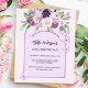 Un arrière - plan rose vif et un cadre en arc. Décoré de fleurs et de papillons violets et violets. Personnalisez et ajoutez votre nom et les détails de votre fête. 1 feuille = 1 invite imprimé bord à bord.