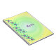 Un joli motif de fleurs violettes avec des feuilles verts fait la bordure le long de la gauche de ces carnets personnalisés. L'arrière - plan est un vert clair pastel et jaune dans un design circulaire. Il y a un espace réservé modèle pour le nom d'une personne, etc, en lettres violettes, à droite des fleurs. Merci pour faire du shopping à CherylsArt sur Zazzle.