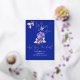Il s'agit d'un mariage de 5' x 7" Enregistrer la carte Date est montré en bleu royal avec des fleurs violettes et des accents de feuille d'or rose et la police de caractères. Il présente un design Tying The Knot. Tout le papier sur l'invitation est un véritable papier peint italien, disponible en or, argent et or rose. L'inverse inclut les prénoms du couple et le texte "Enregistrer la date !". Message MineByDesign pour l'aide sur les commandes personnalisées.