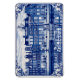 Amsterdam canal houses fridge magnet in Delft Blue style. Generative content with photography by Velvet Escape.