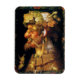 Aimant d'automne Arcimboldo. Peinture à l'huile sur toile de 1573. Giuseppe Arcimboldo était l'un des peintres les plus uniques et les plus bizarres de l'époque baroque. Arcimboldo était célèbre pour ses portraits incroyablement détaillés arrangés à partir de fruits, légumes et autres aliments courants. L'automne est la représentation allégorique de l'automne qui fait tomber les aliments comme le raisin, les citrouilles, les champignons, les grains et les pommes. Un grand cadeau pour les amateurs d'Arcimboldo, d'art surréaliste et de peintures de cuisine.