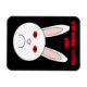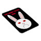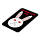 Cet aimant impressionnant présente le visage triste d'un lapin blanc. Ce lapin a une grosse fronde sur son visage parce qu'il est un lapin de laboratoire qui a fait l'objet de tests cosmétiques. Les blancs de ses yeux sont rouges et enflés. Le design a été conçu pour attirer l'attention sur les souffrances inutiles causées par les tests de cosmétiques sur les animaux.