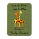 Jolies girafes orange et jaune sur le baby shower vert "Save the Date" magnet. Personnalisez avec votre propre texte.