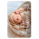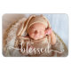 Cet aimant flexible personnalisé 4 x 6 qui dit "béni" dans une police de caractères de script moderne avec des coeurs en blanc et la photo de votre bébé serait si mignon sur vos appareils, bureau ou coffret de fichier ou de donner comme un cadeau à ceux qui sont chers. C'est très facile à customiser - il suffit de télécharger votre photo. C'est si simple !