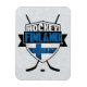 Aimant frigo Suomi du Bouclier finlandais de hockey. Logo en forme de bouclier avec bâtons et rondelles de hockey croisées, et un drapeau de la Finlande avec le texte "Hockey Finlande". Cool détruit look ! Parfait pour les joueurs finlandais de hockey sur glace et les fans! Idéal pour t-shirts, sweat - shirt à capuche, casquette, autocollants, boutons, porte - clés, mugs et bien plus encore. Les éléments peuvent être personnalisés, de sorte que vous pouvez ajouter n'importe quel texte, nom, numéro, etc. Version pour les vêtements de couleur claire.