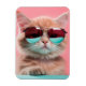 Aimant personnalisé avec lunettes de soleil d'aviateur vêtues d'un chat orange avec un arrière - plan rose.