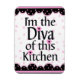 Un mignon aimant pour le boulanger dans votre maison. Il a un arrière - plan tourbillon rose et blanc avec rose et noir à et fond. Il dit que je suis la Diva de cette Cuisine. Très mignon.
