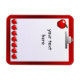 Illustration graphique d'un porte - bloc avec du papier et des pommes rouges par l'artiste-concepteur Charmaine Paulson sur un aimant Enseignants. ©2012charmainepaulson
