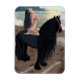 Awesome Stallion friésien avec une belle femme sur son dos! Paysage magnifique, ligne de rivage, plage, île tropicale !