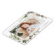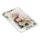 Élégant aimant photo de vacances avec votre photo préférée encadrée de bouquets de fleurs d'ivoire, feuillage vert luxuriant, cônes de pins et baies sèches contre un arrière - plan blanc. Personnalisez les magnets de vacances en ajoutant votre nom et un message d'accueil personnalisé.