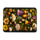 Aimant artistique avec des fleurs colorées, des champignons et des papillons que l'on peut trouver dans une prairie luxuriante au printemps. Peinture numérique botanique dans un style Haeckel moderne.