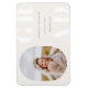 Cadre photo arrondi, aimant faire-part de diplôme de la classe supérieure. Arrière - plan beige d'ivoire doux, blanc gras type "GRAD" et coordination des lignes de modèle de texte gris pour le nom du diplômé, la classe de l'année et l'école.
