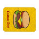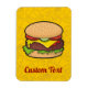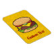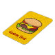 Illustration de dessin animé Cheeseburger. Les aliments indésirables entourent les icônes jaune motif arrière - plan. Texte personnalisé.