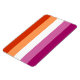The "pink" lesbian flag ts of six shades of red and pink colors and a white bar in the center. The original design, known as the lipstick lesbian flag, includes a red kiss and introduced dans la vie de 2010 sur le blog This Lesbian Life. Both the "pink" and lipstick lesbian flags represent "homosexual women who have a more feminine expression du genre".