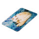 Cet aimant photo flexible illumine votre réfrigérateur ou n'importe quel endroit avec l'image d'un beau chat persan allongé sur un couvre-lit bleu.