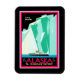 Illustration de la publicité touristique et touristique vintage pour l'Alaska, mettant en vedette le glacier Taku. J'ai ajouté des bordures de conception graphique réfléchies et colorées.