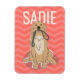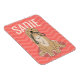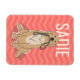 Montrez un peu d'amour pour votre chien avec cet aimant entièrement personnalisable avec un motif de chevron melon vibrant et Golden Retriever tenant sa laisse.