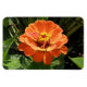 Cet impressionnant aimant présente une photo détaillée d'une jolie fleur de Zinnia orange. La photographie a été prise en utilisant la macro photographie et montre la délicate beauté des pétales oranges et centre jaune de cette belle fleur.