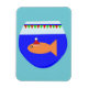 Ce merveilleux aimant présente un amusant poisson rouge de Noël orange portant un chapeau de santa festif. Le poisson rouge nage dans l'eau bleue de son bol de poisson rouge. Le poisson a décoré le haut du bol avec des drapeaux rouges et verts qui épellent le message "Merry Fishmas". Ce poisson de saison amusant est prêt pour une grande fête de Noël.