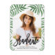 Donnez un aimant photo élégant à vos amis et à votre famille pour commémorer votre jour de remise des diplômes! Le design branché comprend des feuilles de palmiers verts, le mot diplômé dans une police de script tendance, et des espaces réservés pour votre image et votre texte.