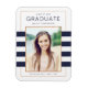 Ces magnets de photo élégants de graduation par Orabella Prints présentent une feuille d'or rose et des rayures bleu marine.