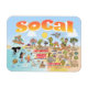 Une scène lumineuse et colorée offre une vue spectaculaire de la Californie du Sud - personnages farfelus sur la plage et le désert de SoCal présentant Los Angeles, Orange County, San Diego, Père Noël Barbara, Riverside, Palm Springs, Anza Borrego et Joshua Tree parcs ainsi que les villes frontalières de Tijuana, Tecate et Mexicali. Cette charmante scène a tout - un surfeur pend dix tandis qu'un orque saute, des animaux zoo accueillent les touristes, un mec musclé fait défiler ses fesses et un T-Rex lance un défi tandis qu'un char se met en position et bien plus encore...