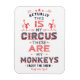 Poster de style cirque rétro en rouge et bleu marine sur blanc avec étoiles, bannières et accents design présente des mots dans l'art de style festival de style de typographie, "En fait, c'est mon cirque ce sont mes singes. Profitez Du Spectacle."