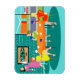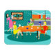 Ce Retro Women's Weekly Card Game Flexi Magnet présente un dessin animé de quatre femmes modernes du milieu du siècle à une fête de poules. Ils se retrouvent dans une salle élégante. Sur un mur en brique turquoise et turquoise, il y a une impression en toile Stretched Art Moderne du milieu du siècle, disponible au magasin Zazzle de StrangeLittleOnion. Mon, ils ont du bon goût ! A travers des portes coulissantes en verre, on peut voir les pelouses verdoyantes et verdoyantes des banlieues. De l'autre côté de la rue, une élégante maison orange avec une voiture rose et blanche garée dans le port. De retour dans la salle à manger, trois femmes sont assises à une table ronde avec une nappe orange. Il y a une rousse en robe jaune, une brune en robe verte et une blonde en robe rouge. Ils tiennent des cartes entre leurs mains. Quatre tasses sont sur la table en attente d'être remplies par l'hôtesse aux cheveux raven dans une robe torsadée rose. Elle porte un plateau avec une carafe de thé perchée sur le dessus. Toutes les femmes passent un moment merveilleux, mais elles devraient probablement garder un oeil sur la blonde. Si cette carte qu'elle tient derrière son dos est une indication, elle triche !