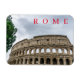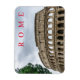 A beautiful view of a section of the Colosseum in Rome printed on a souvenir fridge magnet.