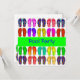 Grand été Invitation de la piscine, faite en forme de carré. Des graphismes amusants de tongs colorés couvrent le devant de l'invitation, avec des rayures vertes, au milieu, avec texte bleu lisant Pool Party. L'arrière de l'invitation a un texte bleu et vert et deux lignes de tongs colorés, en bas. Personnalisez tout le texte pour répondre à vos besoins évènementiels pour des fêtes de piscine ou de plage.