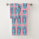 Illustration d'une paire de tongs de plage rose et bleu. C'est l'été ! Faisons une pause et amusons-nous sous le soleil. N'êtes-vous pas excité de préparer toutes vos affaires pour les vacances ? N'oubliez pas vos tongs.