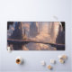 A futuristic city with towering skyscrapers floats above a sea of clouds. Bridges connecting the buildings add an ethereal quality to the scene.