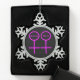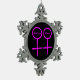 Ce magnifique ornement est conçu pour les lesbiennes. Il comporte deux symboles féminins roses côte à côte. L'arrière - plan est noir et il y a du texte rose personnalisable à l'intérieur de chacun des symboles pour mettre des noms.