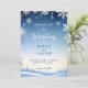 Annoncez votre journée spéciale avec style avec cette invitation à un mariage d'hiver enchanteresse. Doté d'un ciel bleu et enneigé orné de délicats flocons de neige blancs et d'un paysage hivernal paisible, ce design saisit la magie de la saison. L'élégante typographie assure que vos détails mariages se démarquent avec beauté sur fond glacé. Parfait pour les couples qui souhaitent célébrer un hiver romantique, cette invitation donne le ton d'une journée remplie d'amour, de chaleur et de souvenirs intemporels. Le texte personnalisable permet d'ajouter facilement vos données personnelles et de créer un souvenir que les invités apprécieront.