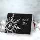 Personnalisez l'élégante carte de remerciement Flocon de neige noir et blanc avec votre propre message personnel de gratitude et de reconnaissance. Convient pour une utilisation pour les cadeaux reçus après un anniversaire en décembre, janvier ou février, une douche de mariée, un mariage ou des fêtes de Noël. Cette carte de remerciement hivernale personnalisée de classe présente un motif complexe de flocons de neige blancs sur fond noir.