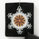 Image kaléidoscope numérique amusante créée à partir d'une de mes photos originales de flammes. Les flammes sont utilisées pour créer un prisme de rayons en forme de soleil avec différentes nuances de noir, marron et orange.