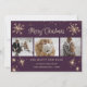 Cartes de Noël mauve personnalisées avec des flocons de neige et des étoiles à l'avant et des flocons de neige brillants à l'arrière. Personnalisez facilement ces cartes de Noël violettes avec vos images, votre texte et un nom de famille.