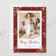 Cartes de Noël rougeoyantes personnalisées avec flocons de neige, étoiles et chutes de neige sur un arrière - plan rouge. Personnalisez facilement ces cartes rouges de Noël avec votre image, votre texte et votre nom de famille.
