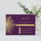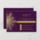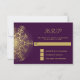 Flocon de neige doré sur violet mariage d'hiver élégant RSVP réponse/réponse carte qui comprend un flocon de neige doré sur l'aubergine violet arrière - plan foncé. Ce design personnalisé est un modèle entièrement personnalisable et fait partie d'un ensemble mariage parfait pour un mariage d'hiver ou de Noël de décembre.