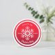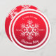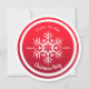 Invitation de fête d'hiver dans simple design moderne scandinave de flocon de neige sur un élégant arrière - plan à dégradé rouge. Créé en forme de papier rond pour un attrait unique supplémentaire. Texte formaté à l'avant et à l'arrière prêt à être édité avec vos propres détails.