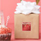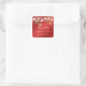 Flocons de neige blancs et dorés sur un autocollant Merci Mariage de Noël sur fond rouge