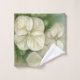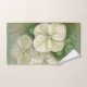 Cet ensemble de serviettes est décoré d'oeuvres d'art dans des couleurs pastel douces picturant trois délicates fleurs d'hydrangée en feuilles de chêne blanc crémeuse aux bourgeons accentués de vert.