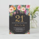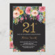 Invitation Florale 21e Anniversaire pour les femmes. Fleur florale aquarelle. Parties scintillant Noir et Or. Rose, Jaune, Orange, Fleur Violette. Anniversaire adulte. Pour plus de personnalisation, cliquez sur le bouton "Customiser" et utilisez notre outil de conception pour modifier ce modèle.