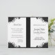 © Sunny Mars Designs - Floral Hibiscus : Black on White Bi-Fold programmes de mariage - tendance, élégant, moderne, élégant, chic, personnalisé mariage plié programme de mariage livret modèle avec magnifique Goth noir tourbillonnant design hibiscus tropical.