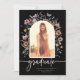 Floral Black Graduate Faire-part. Ce faire-part de graduation élégant et élégant présente de magnifiques fleurs sauvages d'aquarelle peints à la main, disposés comme un joli bouquet et un élégant script de calligraphie. Le dos comprend un beau motif de coordination. Trouvez les produits correspondants dans la collection Boho Fleur sauvage Graduation Collection.