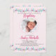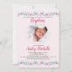 De minuscules fleurs roses, fuchsia et lavande bordent le haut et le bas de cette adorable invitation. Un cadre ovale pointillé tient la photo de votre bébé.<a href="https://www.freepik.com/free-vector/hand-drawn-little-flowers-cute-background_893430.htm">Conçu par Freepik</a>). <br/>() La carte est facile à customiser avec votre libellé, police et couleur de police.<br/>() Pas exactement ce que vous cherchez? Tous nos produits peuvent être conçus sur mesure pour répondre à vos besoins sans frais supplémentaires.<br/>() Il suffit de nous contacter à askcottonlamb@gmail.com .<br/>() Coordination des produits disponibles : Il suffit de nous demander!