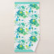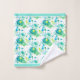 Serviette Jardin Oriental. Belle présentation de fleurs bleu vif adossées à du blanc.