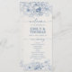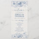Floral Chinoiserie Wedding Program est un programme de mariage élégant conçu avec des motifs de Chinoiserie et des détails floraux sophistiqués. Cette carte fournit aux invités des informations sur la cérémonie et les événements, les aidant à suivre facilement tout au long de la journée de mariage. Avec son style classique et raffiné, ce programme de mariage peut être customisé pour correspondre au thème et aux couleurs de votre mariage, créant un look cohésif et élégant pour votre papeterie mariage.