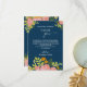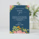 Ce design moderne et classique présente des éléments floraux dans différentes teintes de rose, d'orange et d'olive poussiéreux sur un arrière - plan bleu foncé. Le design présente également différents types de verdure et de branches. Ce design peut être utilisé pour une soirée mariage ou de bachelorette. Voir d'autres produits similaires de OliaArtPositiv.