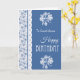 Une carte d'anniversaire très jolie à personnaliser, avec une frontière florale de bleu d'indigo, a équilibré avec la dentelle de faux, sur la couverture et un motif assorti sur l'intérieur, où vous pouvez également personnaliser le message. Cette conception fait partie de la collection snob et Painterly de "indigo".